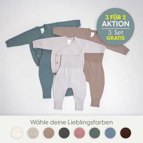 Das Rund-um-Sorglos Set aus einer Decke, Wickeljacke und 2 Bundhosen für Geborgenheit und Wärme.