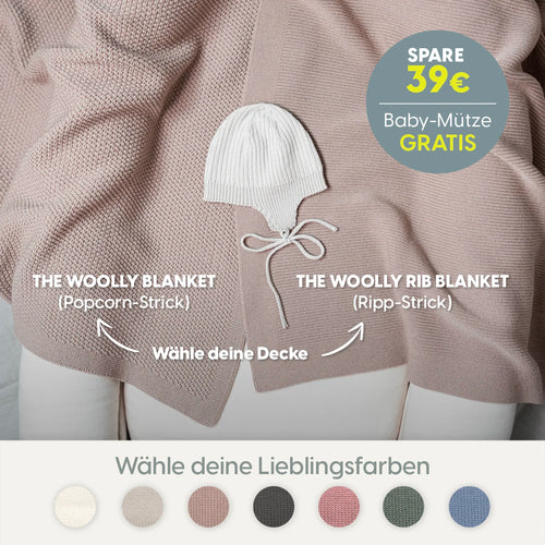 Die weichste Babydecke für die schönsten Kuschelmomente in den kleinen Jahren und eine mitwachsende Baby-Mütze in einem Set.