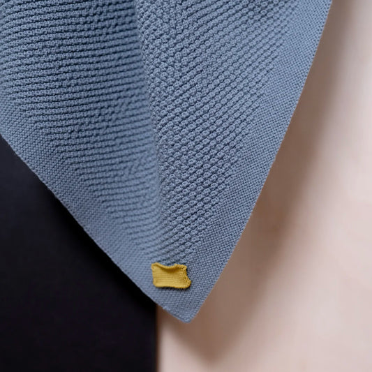 Strickdecke aus GOTS Merinowolle in hellem Taubenblau