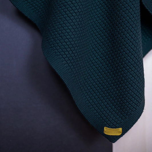 Strickdecke aus GOTS Merinowolle in dunklem Blau-Grün