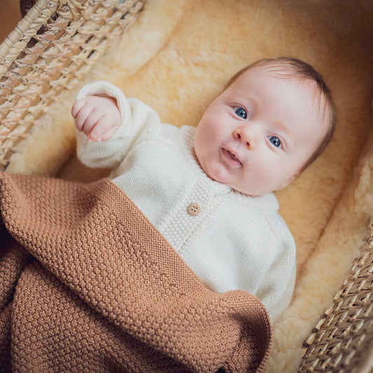 Unsere weichen Babydecken aus 100% GOTS Merinowolle spenden Babys Wärme und Geborgenheit und sind wahre Alleskönner. Egal ob drinnen oder draußen und egal zu welcher Jahreszeit.