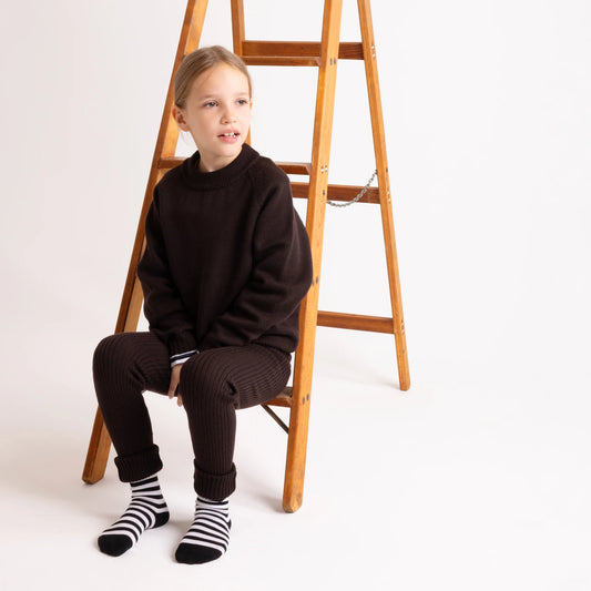 Mitwachsende Leggings aus GOTS Merinowolle in dunklem Braun