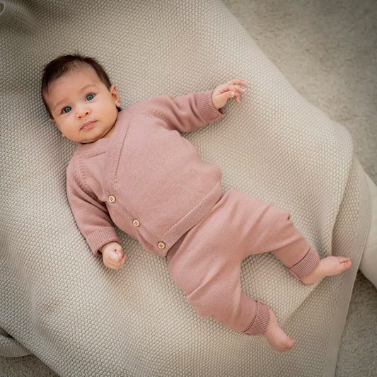 Mitwachsende Wickeljacke aus GOTS Merinowolle in zartem Altrosa