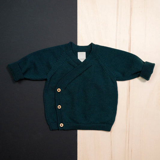Wickeljacke aus GOTS Merinowolle in dunklem Blau-Grün