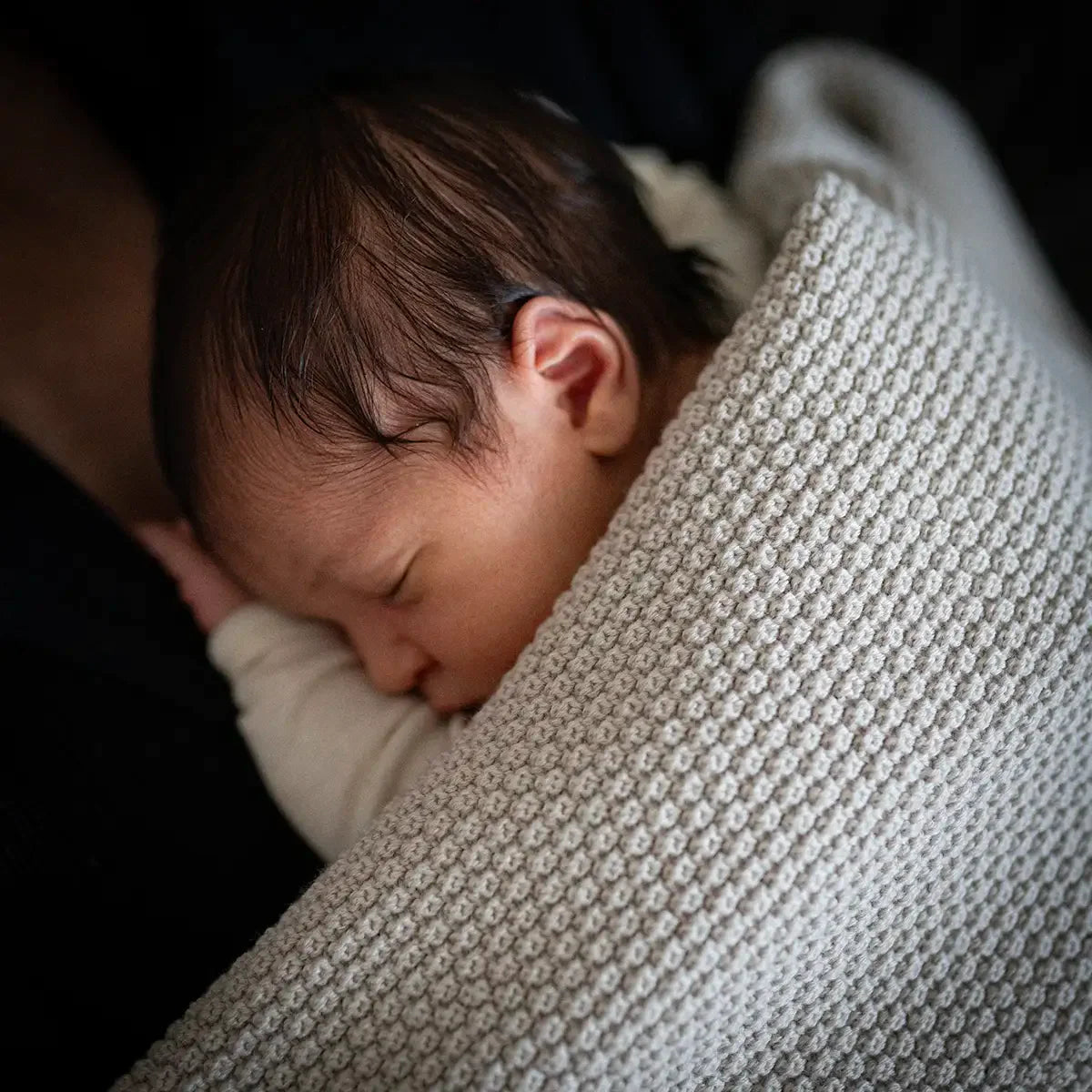 Wir haben uns für unsere Strickprodukte bewusst für Merinowolle entschieden. Denn keine andere Faser hat so viele natürliche Superkräfte, die deinem Kind den größtmöglichen Wohlfühlfaktor und dir das Vertrauen und die Sicherheit geben, die es für ein ruhiges und sanftes Ankommen und in den ersten Lebensmonaten braucht.