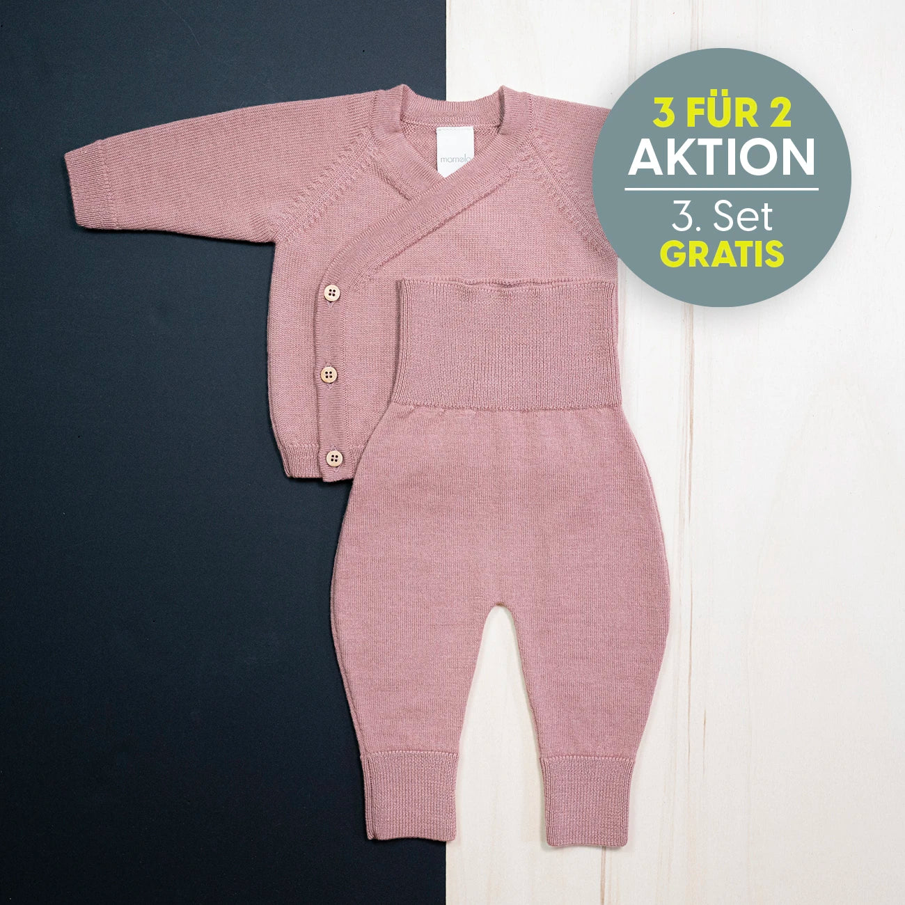 Kuschelige, mitwachsende Wickeljacke und Bundhose aus 100% mulesing-freier, GOTS Merinowolle