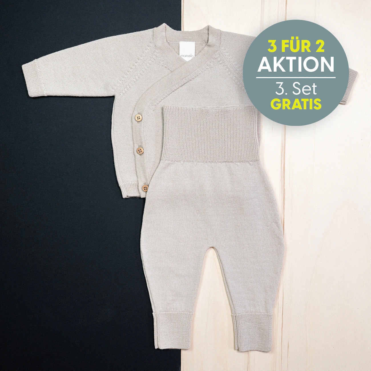 Kuschelige, mitwachsende Wickeljacke und Bundhose aus 100% mulesing-freier, GOTS Merinowolle
