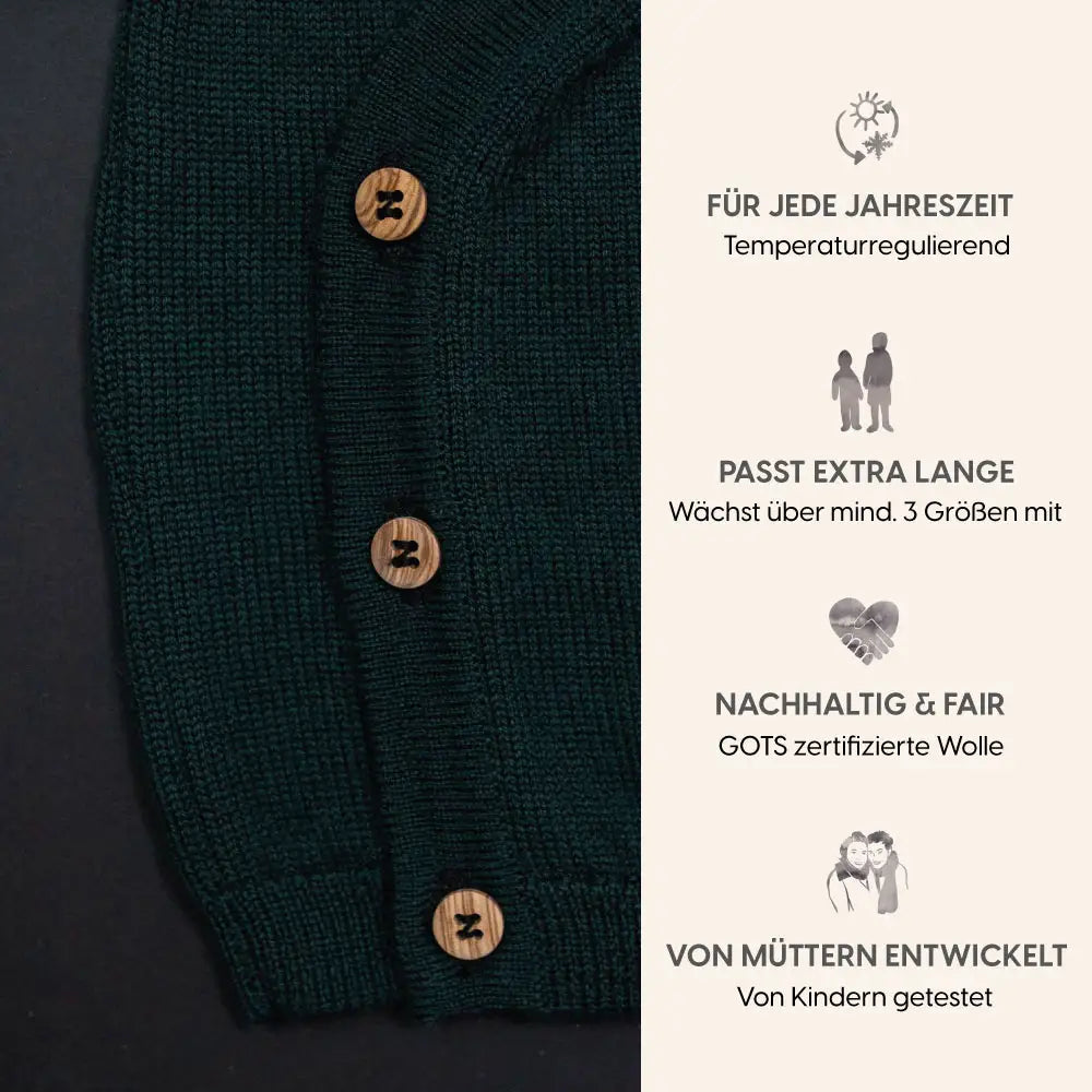 Kuschelige, mitwachsende Wickeljacke aus 100% mulesing-freier, GOTS Merinowolle