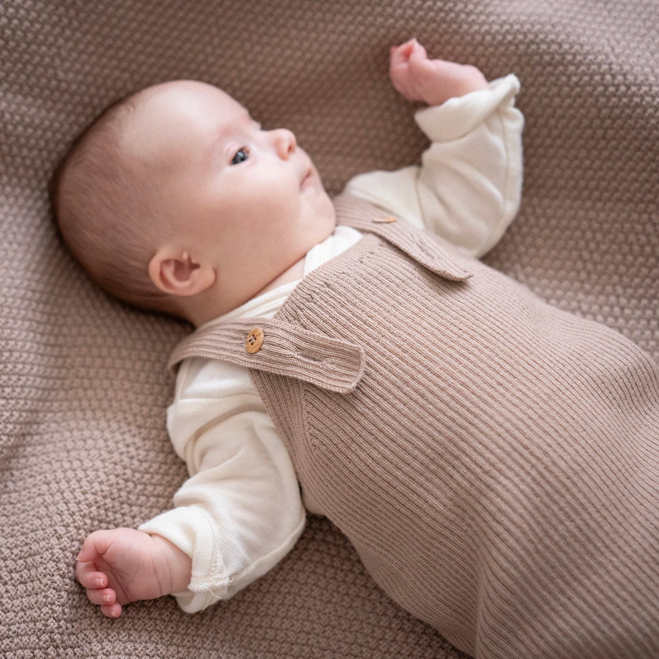 Von Geburt an für die Erstausstattung und das erste, kleine Jahr - unsere mitwachsende Latzhose aus reiner, mulesing-freier Bio-Merinowolle und innovativem 3D Strick. Sie ist in einem Stück gestrickt, ganz ohne Nähte - damit nichts drückt und Babys es einfach nur gemütlich und kuschelig haben.