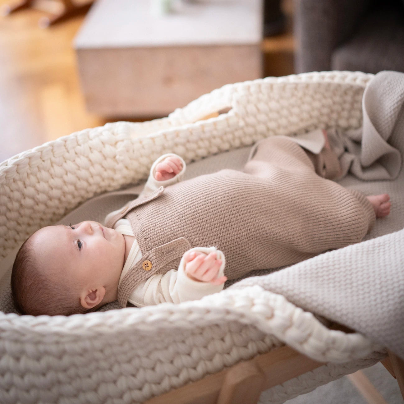 Wir haben uns für unsere Strickprodukte bewusst für Merinowolle entschieden. Denn keine andere Faser hat so viele natürliche Superkräfte, die deinem Kind den größtmöglichen Wohlfühlfaktor und dir das Vertrauen und die Sicherheit geben, die es für ein ruhiges und sanftes Ankommen und in den ersten Lebensmonaten braucht.